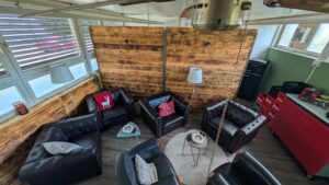 - Ein gut gelüfteter und heimeliger 2nd livingroom inkl. Toilette und Küche.